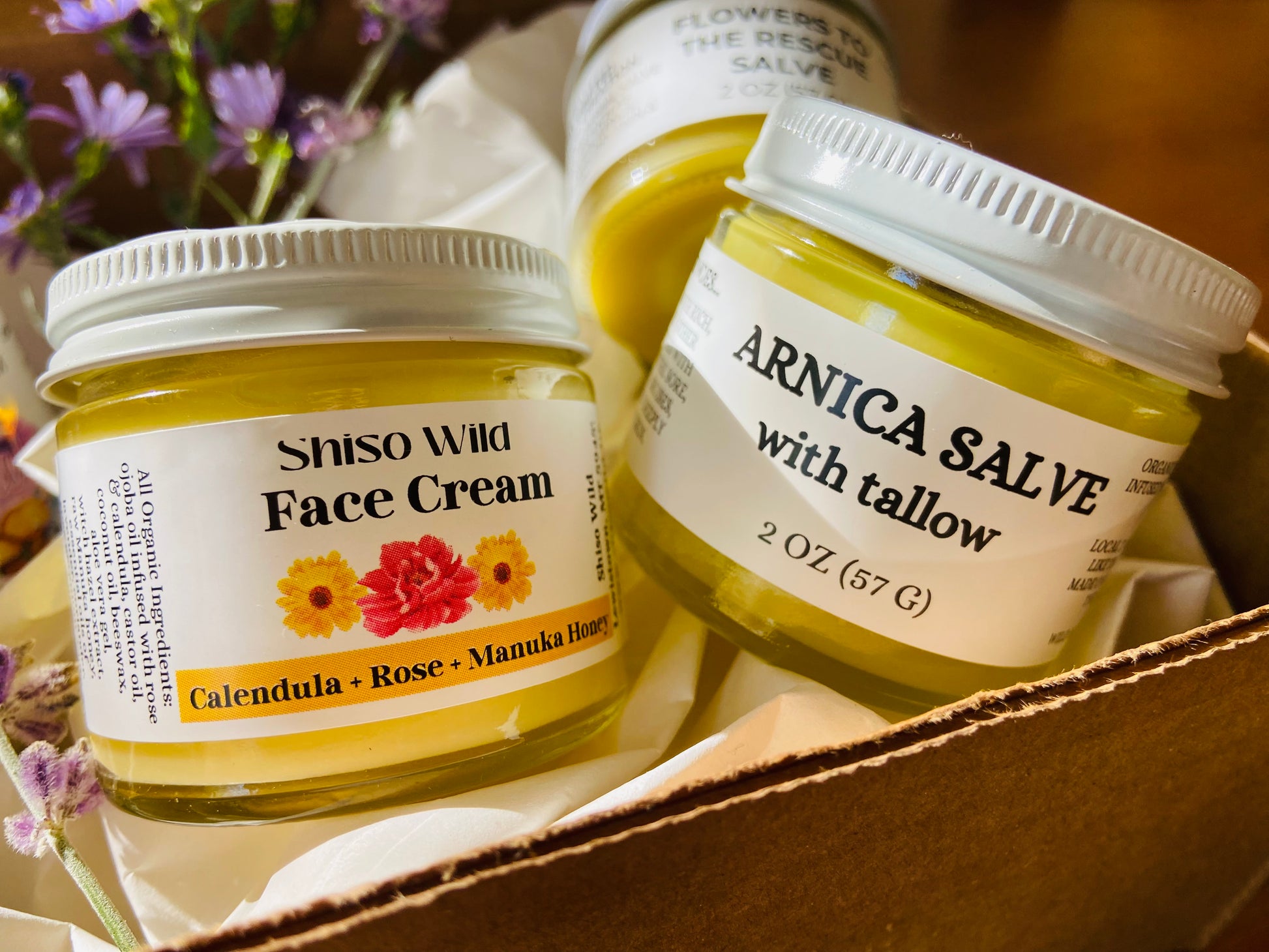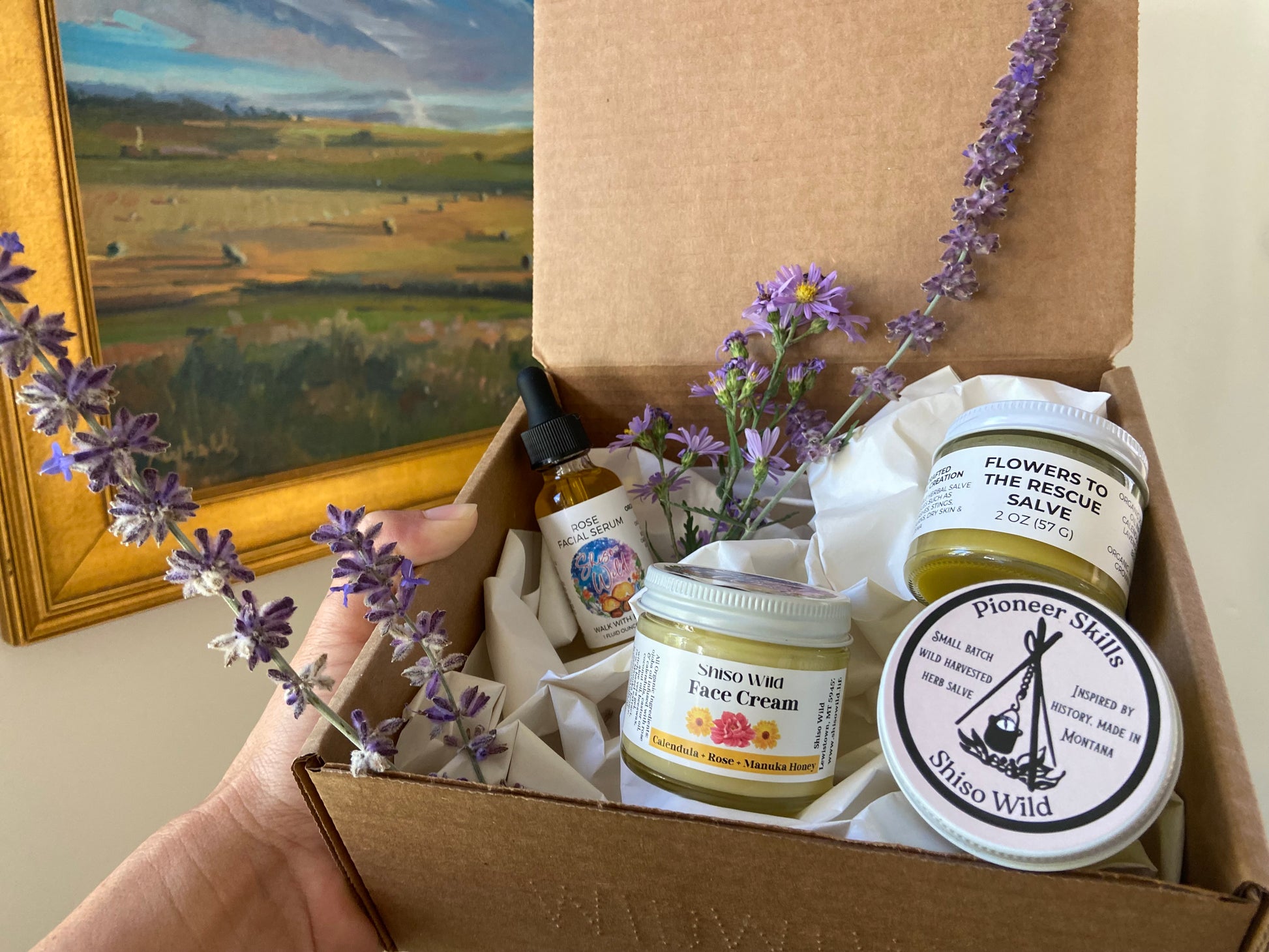 Absolutely overflowing with the rich essentials for skincare—including Montana beeswax, rose extracts, and the pioneer staple for glowing skin: tallow. This box comes with 4, yes 4!, hancrafted beauty salves & oils.
