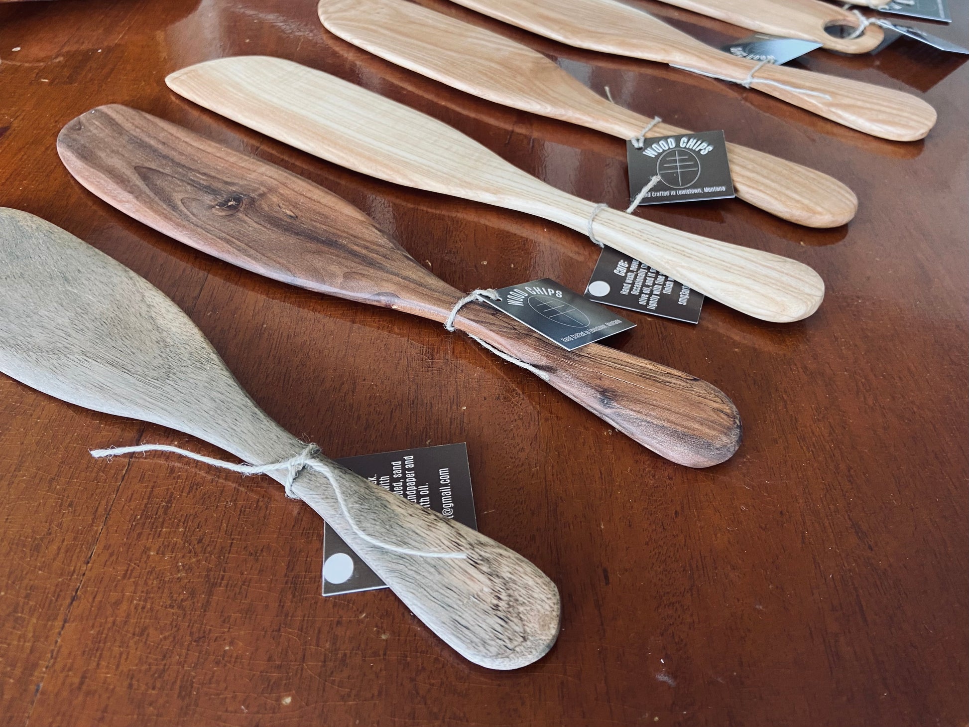 Made by hand here in Montana, in a tiny woodshop. Carved by my dear friend Susan Gellner. This spoon is made of local ash wood. Harvested, dried, & carved right here in Montana. Sold individually. Medium/large mixing spoon size. 11 1/2” long